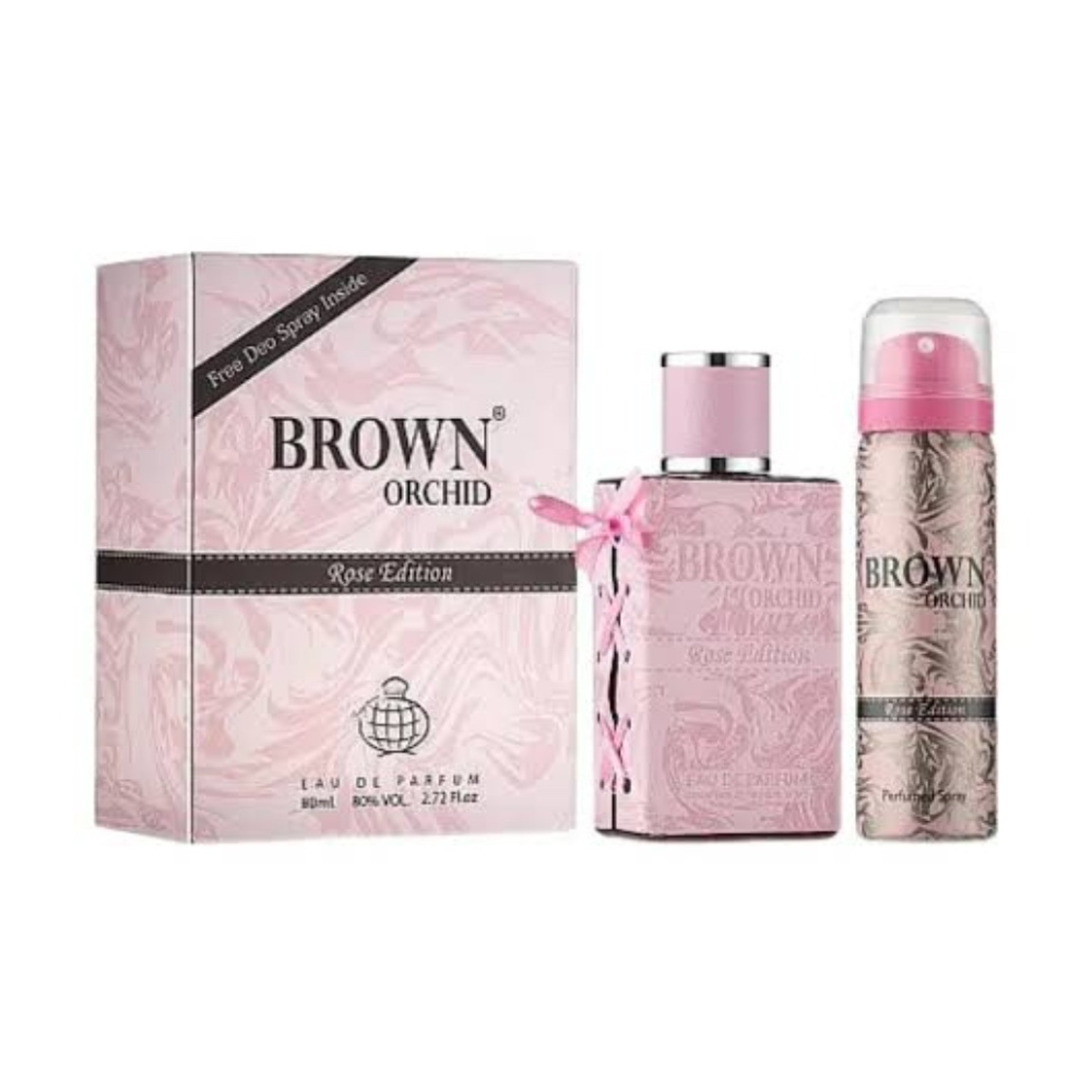 Fragrance World Brown Orchid Rose Edition - 80ml + Free Deodrant Spray