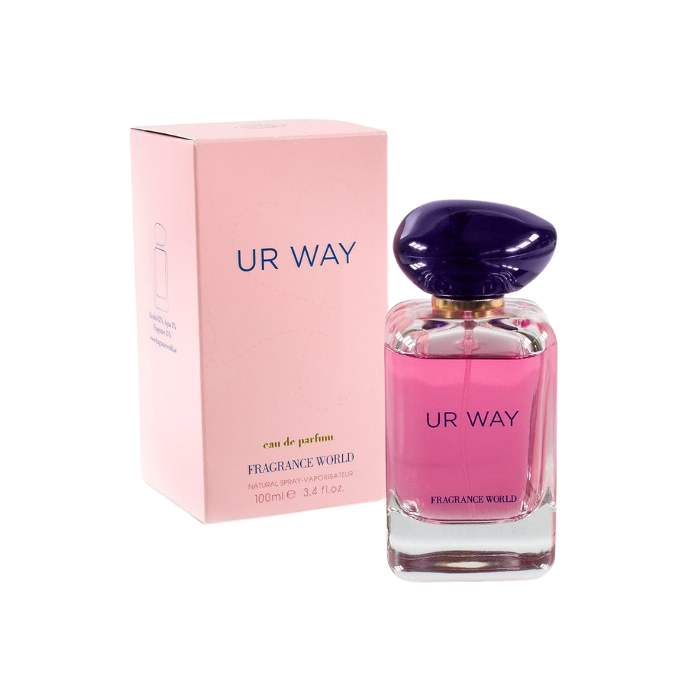 Fragrance World Ur Way Eau De Parfum 100ml offers an exquisite blend inspired by My Way by Giorgio Armani. This enchanting floral fragrance opens with top notes of orange blossom and bergamot, delivering a fresh and invigorating scent.